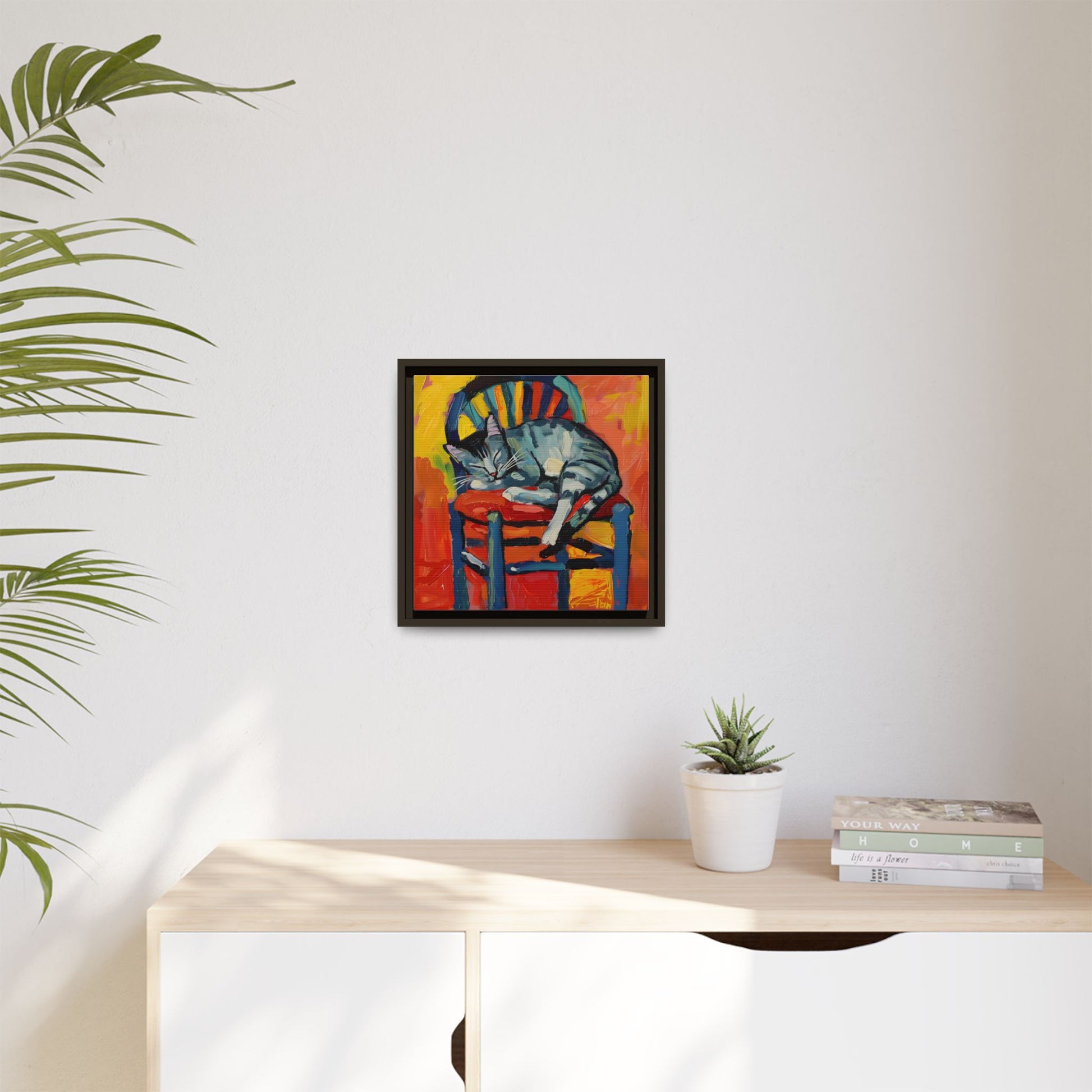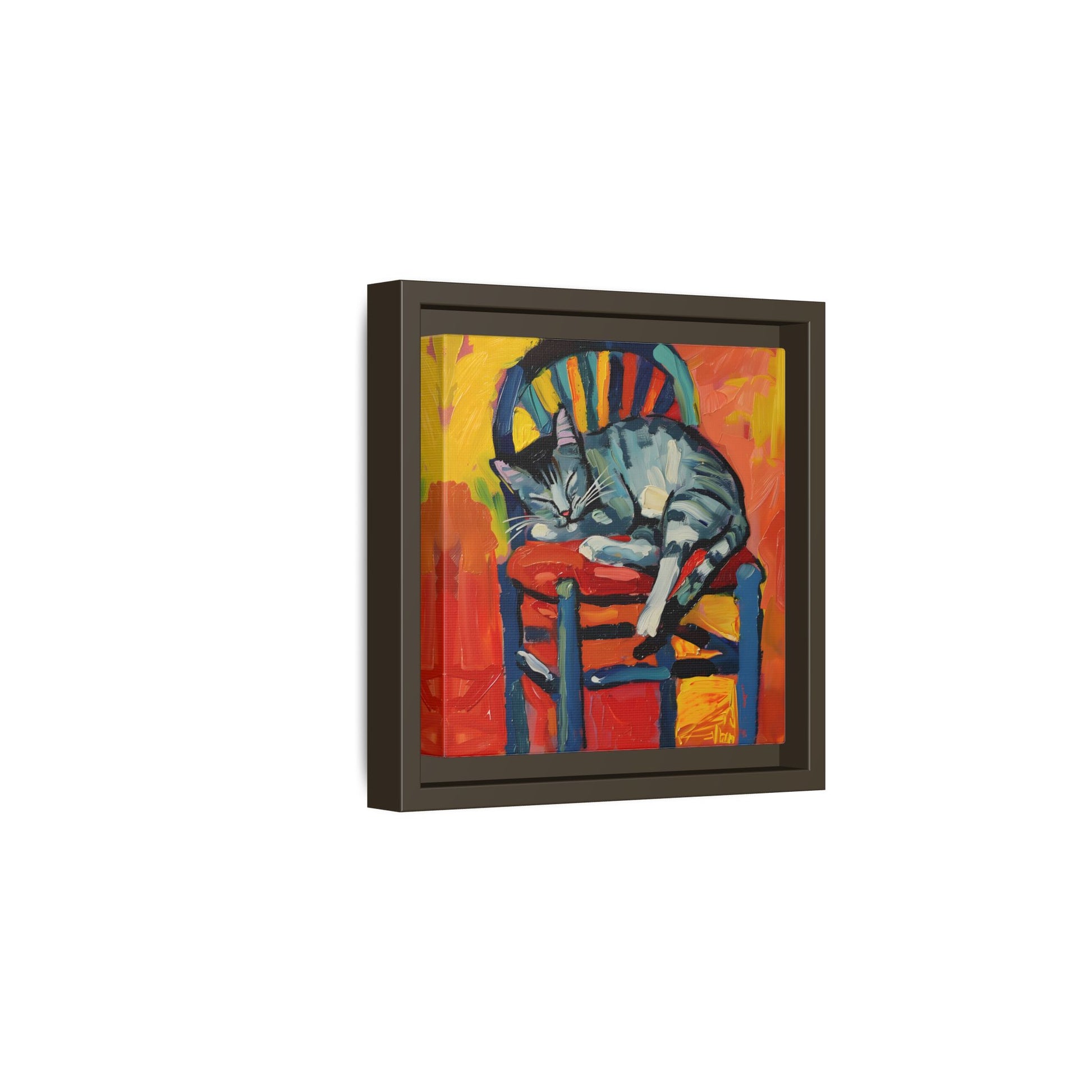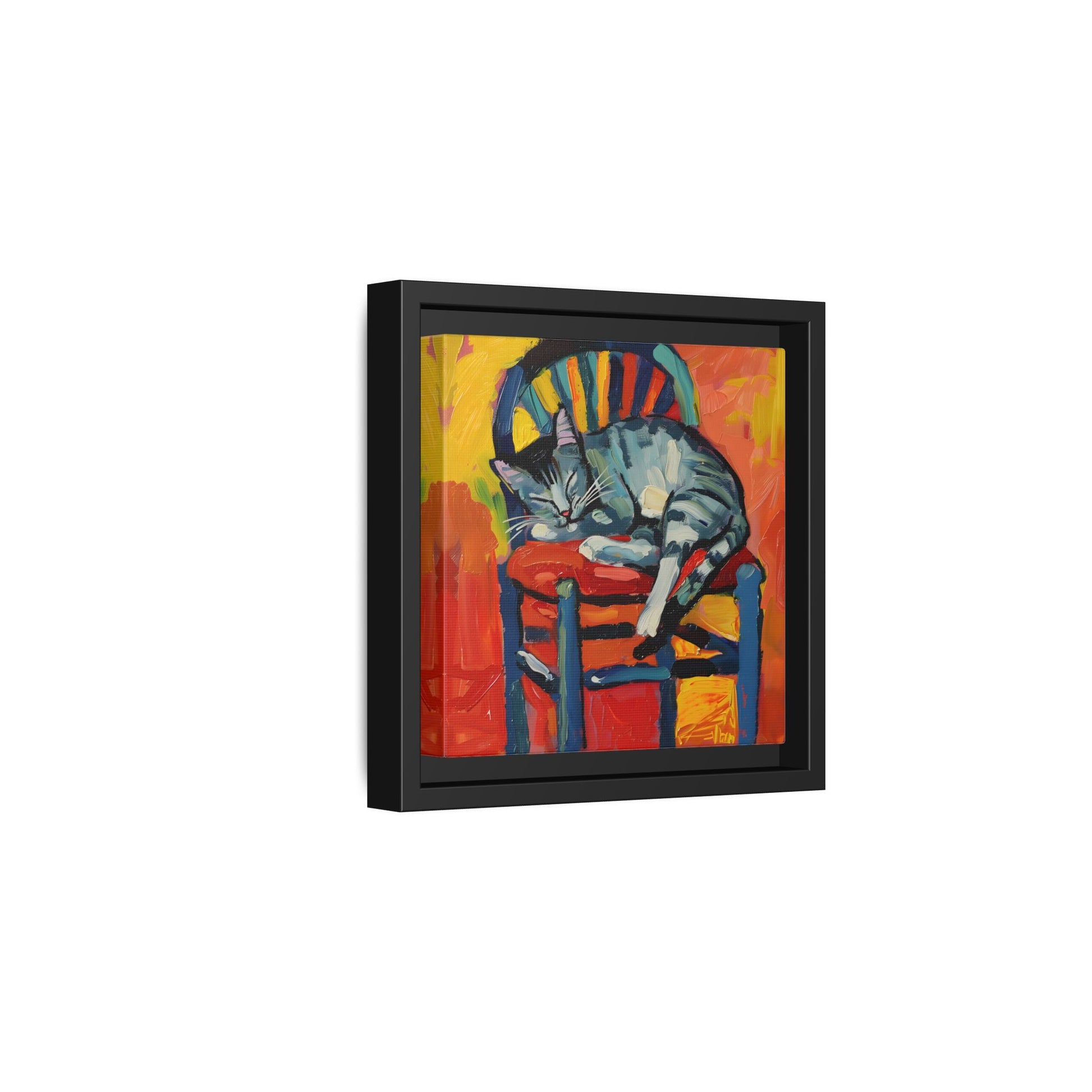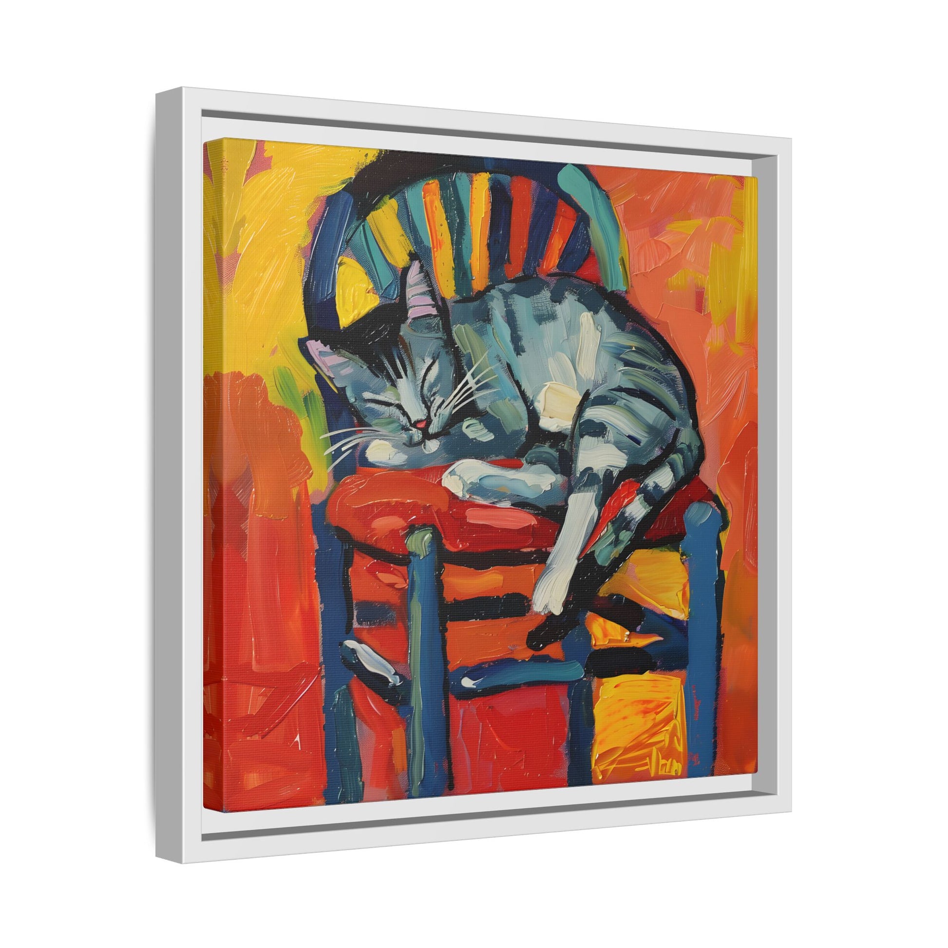 Transform your living space with this vibrant Matte Canvas, Framed art piece. Featuring a playful depiction of a cozy cat nestled on a chair, this canvas adds a splash of color and a sense of warmth to any room. Perfect for cat lovers and art enthusiasts alike, it creates an inviting atmosphere that sparks joy and whimsy. Ideal for home decoration, it makes a thoughtful gift for birthdays, housewarming parties, or simply as a treat for yourself. Use it to express your personality, celebrate childhood memories, or reminisce about lazy afternoons with pets. Its cheerful palette is sure to uplift any environment, making it a delightful addition to your art collection or wall gallery.
