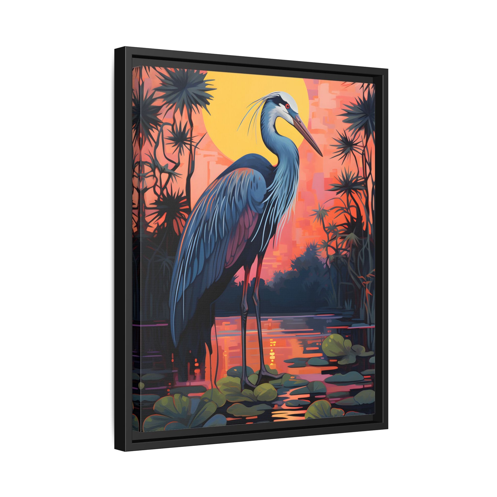 Colorful Heron Art Canvas Print - Framed Wall Decor