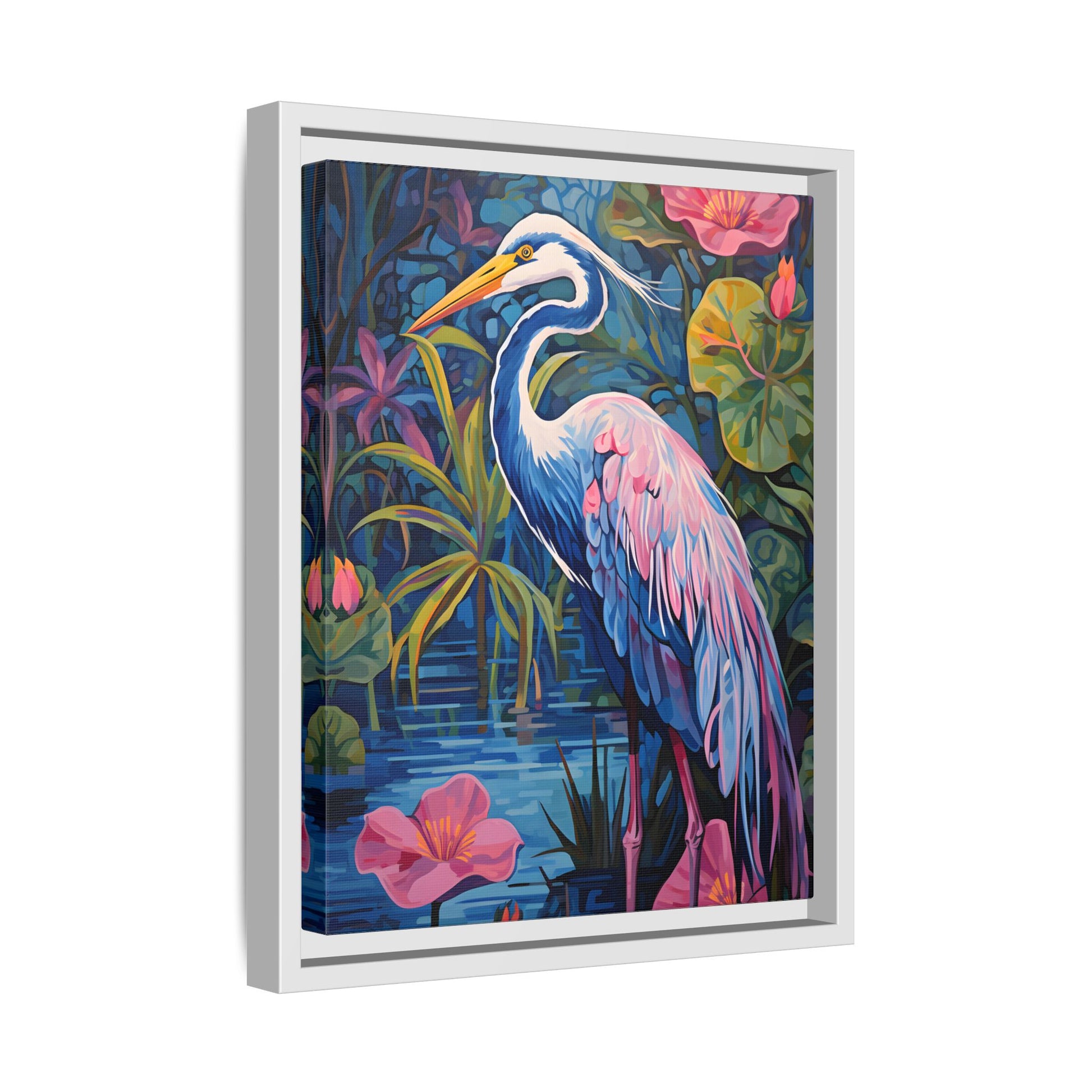 Colorful Heron Canvas Art Print - Framed Wall Decor