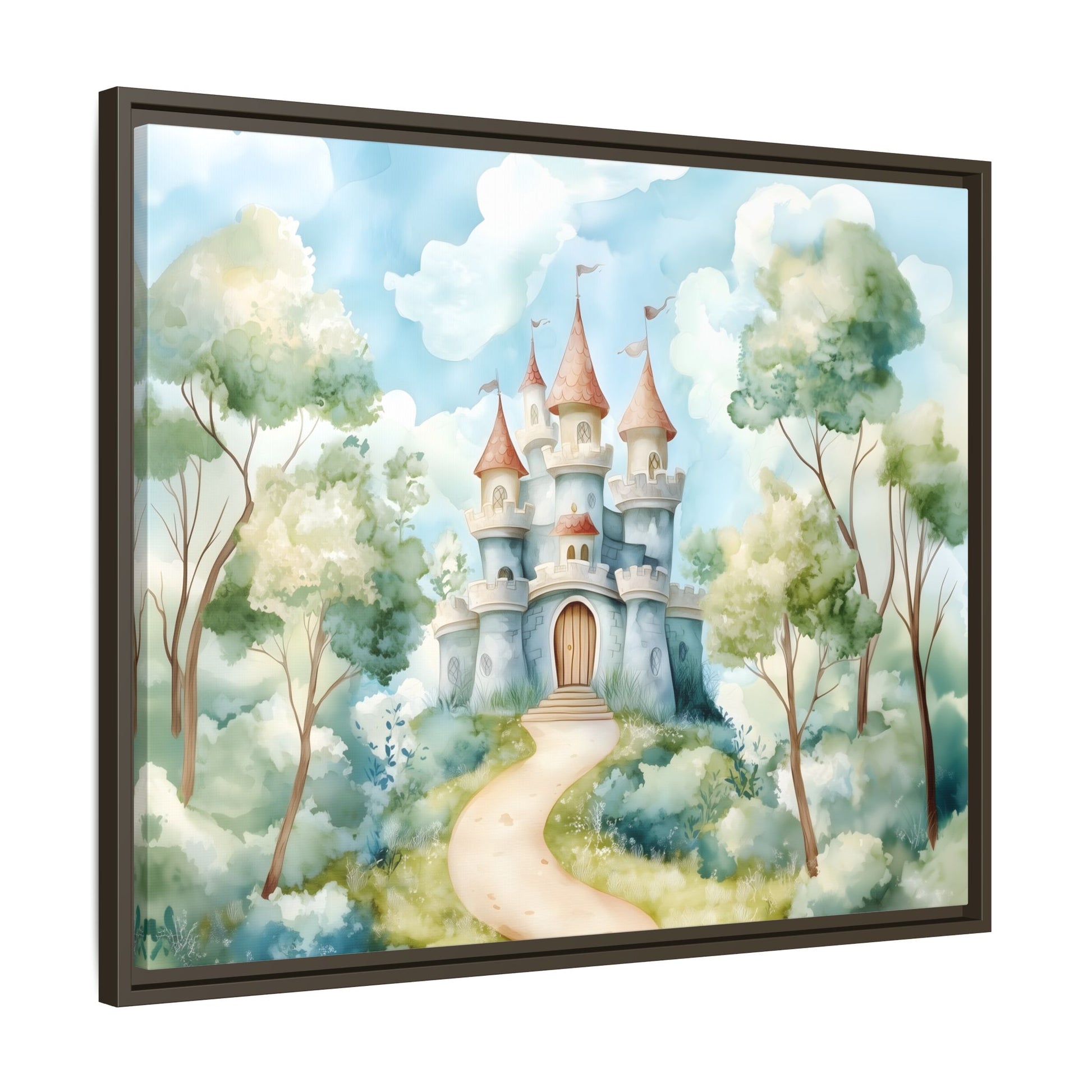 Transform your space with this stunning Framed Matte Canvas, perfect for bringing a touch of whimsy and enchantment to any room. Featuring a dreamy castle surrounded by lush greenery, this artwork creates a serene atmosphere that invites daydreaming and inspires creativity. Ideal for children's nurseries, playrooms, or anyone who loves a touch of fantasy in their décor. This canvas makes a thoughtful gift for birthdays, housewarmings, or even holidays like Christmas and Easter, capturing the hearts of both young and adult art lovers alike.